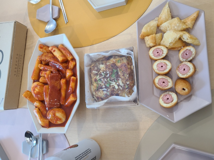 여기는 핫도그가 정말 신의 한수인데요. 떡볶이 소스에 핫도그를 찍어 먹으면 정말 잘 어울립니다. 만두는 약간 딱딱한데, 그냥저냥 먹을만 합니다. 일단 떡볶이 소스가 맛있으니까 뭘 찍어먹어도 아주 맛있습니다.