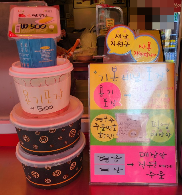 포장을 하면 기본적으로 비닐에 해주십니다. 용기포장을 선택하면, 500원이 추가되는데요. 저희는 집에 그릇을 사용하려고 용기포장을 선택하지는 않았습니다.