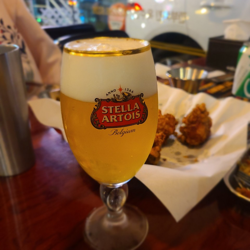 먹다 보니 맥주가 더 마시고 싶어서 스텔라 생맥주도 시켜봤습니다. 모든 매장에 스텔라가 있을지는 모르겠습니다.