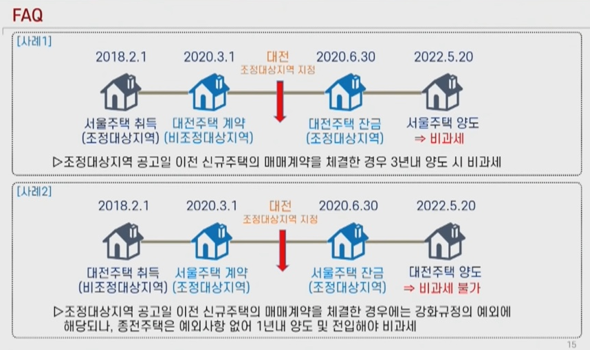- 신규주택을 취득하고 3년 이내에 기존주택을 양도하시면 됩니다. 하지만, 기존주택과 신규주택이 모두 조정대상지역에 있다면 기간이 달라집니다. 이는 아래에서 자세히 다루겠습니다.