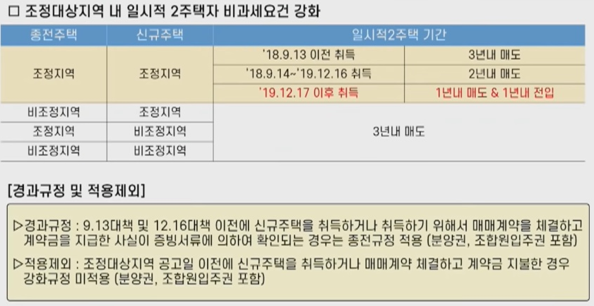2. 조정지역에서의 일시적 1가구 2 주택 비과세 요건