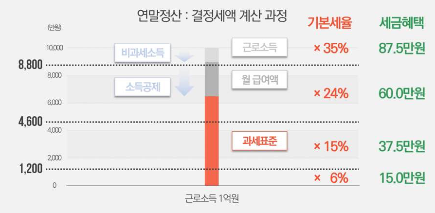 - 세액공제 : 세금에서 해당 금액만큼 빼주는 것