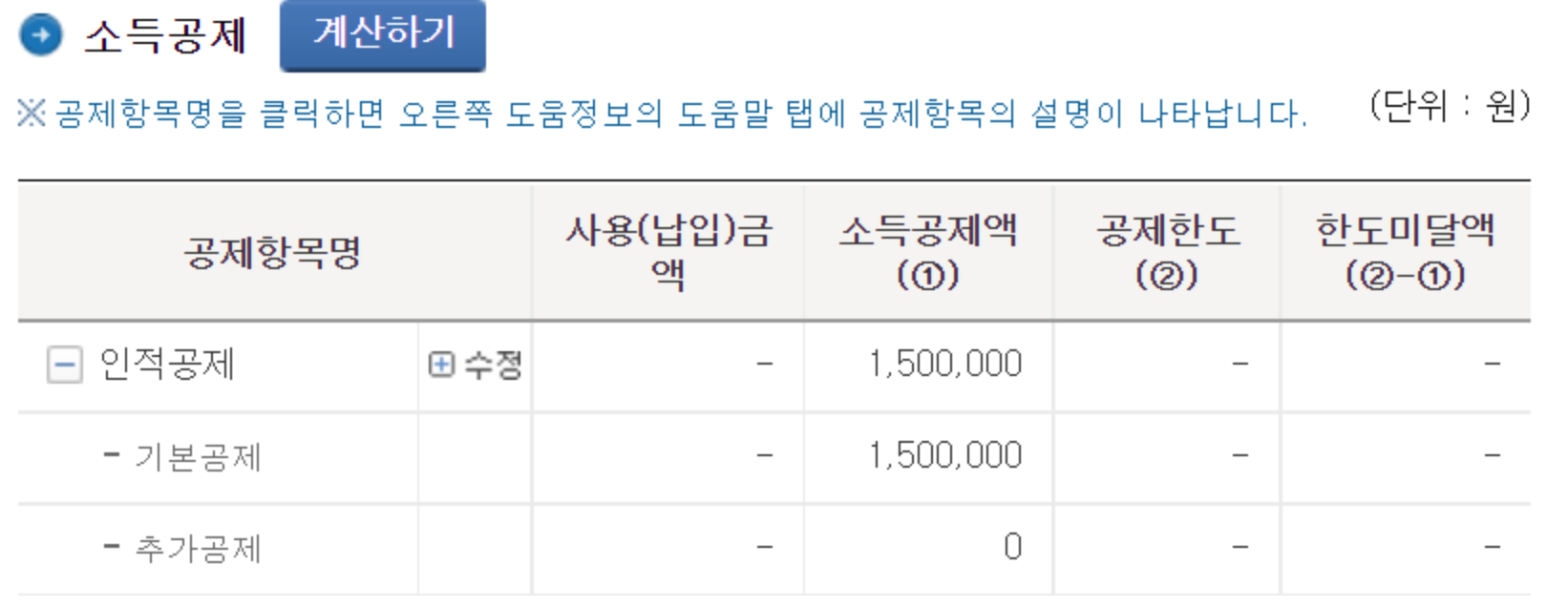 연말정산을 진행은 국세청 홈택스에서 진행합니다. 홈택스에서 기본공제에 이미 '본인'에 대한 공제 150만 원만 들어가 있을 것입니다.