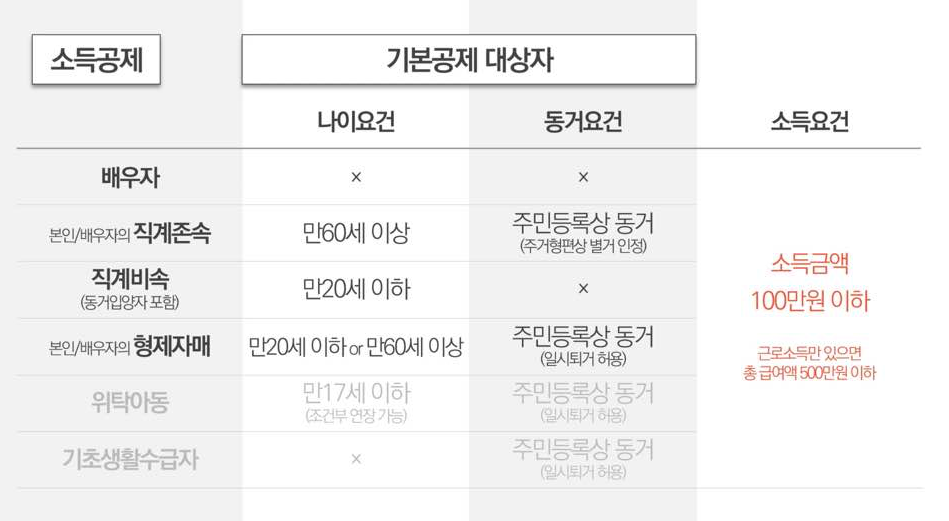 여기서, 소득금액 100만 원이라는 것은 연 소득이 100만 원 이하를 의미하는 것은 아닙니다. 소득금액은 총소득에서 비용을 빼준 금액을 의미합니다.