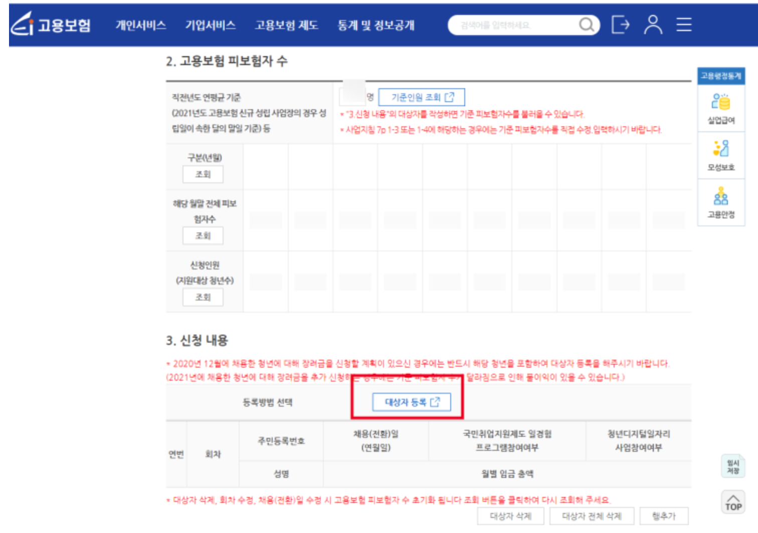- 신규채용 청년은 4대 보험에 가입해야 함