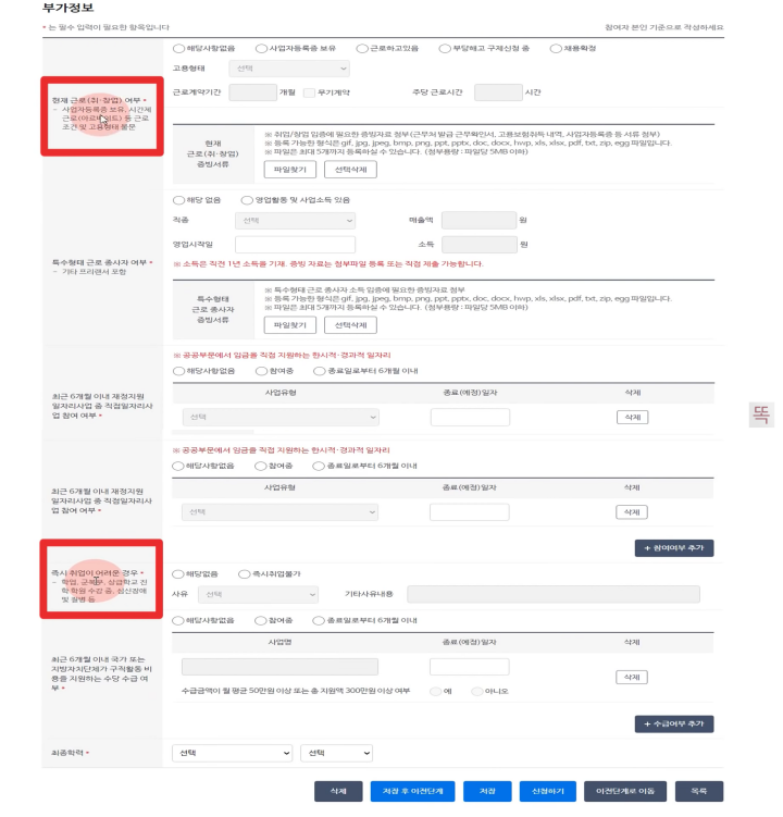 6) 기본정보 취업지원 유형 선택