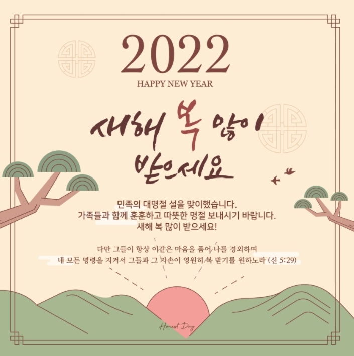 - 코로나19로 힘들었던 2021년이 지나 2022년 설이 다가왔습니다. 계획하는 모든 일과 소망들이 이루어지는 2022 임인년 보내시길 바랍니다. 항상 건강하세요!!