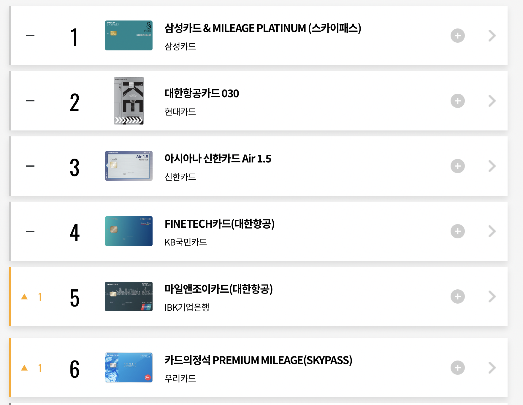 1. 삼성카드 & MILEAGE PLATINUM(스카이패스)