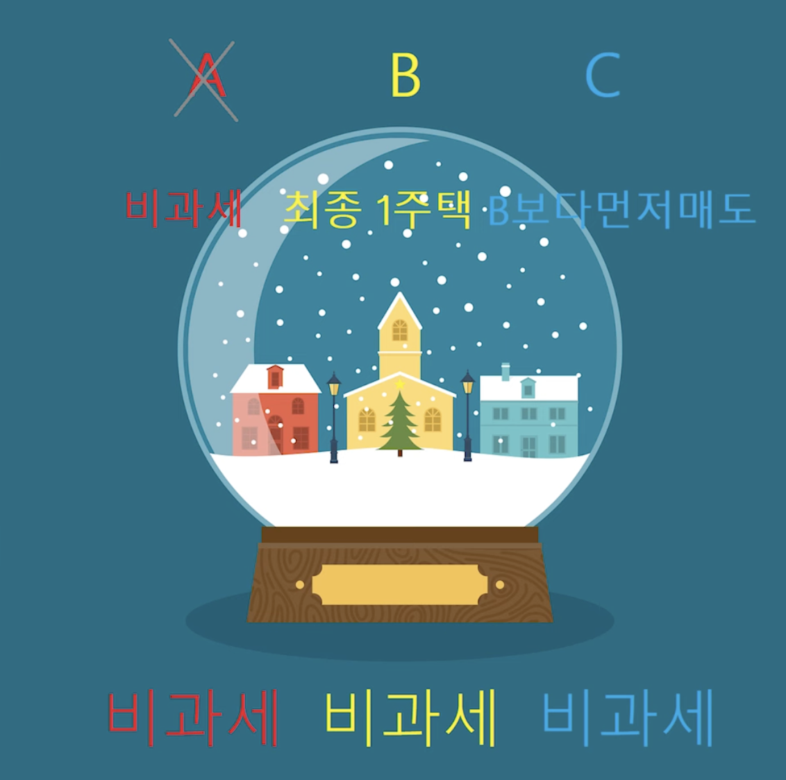 또는 C주택을 매도하지 않고 끝까지 2 주택 포지션을 유지하여, 향후 정책기조를 보는 것도 하나의 방법입니다.