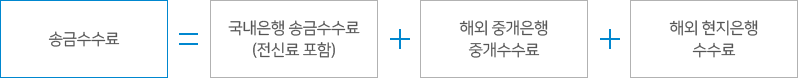 국내은행을 통해 해외로 송금하는 경우 국내은행에 부담하는 국내은행 송금수수료(전신료 포함)가 있으며, 이외에 해외 중개은행에 부담하는 중개은행 수수료 및 해외 현지 은행에서 송금액을 받으실 때 부담하는 현지 은행 수수료 등이 별도로 발생할 수 있습니다.
