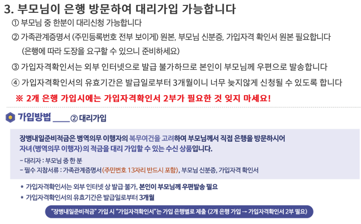 - 잔여 복무기간이 6개월 이상 남은 사람에 한하여 신규 가입 가능