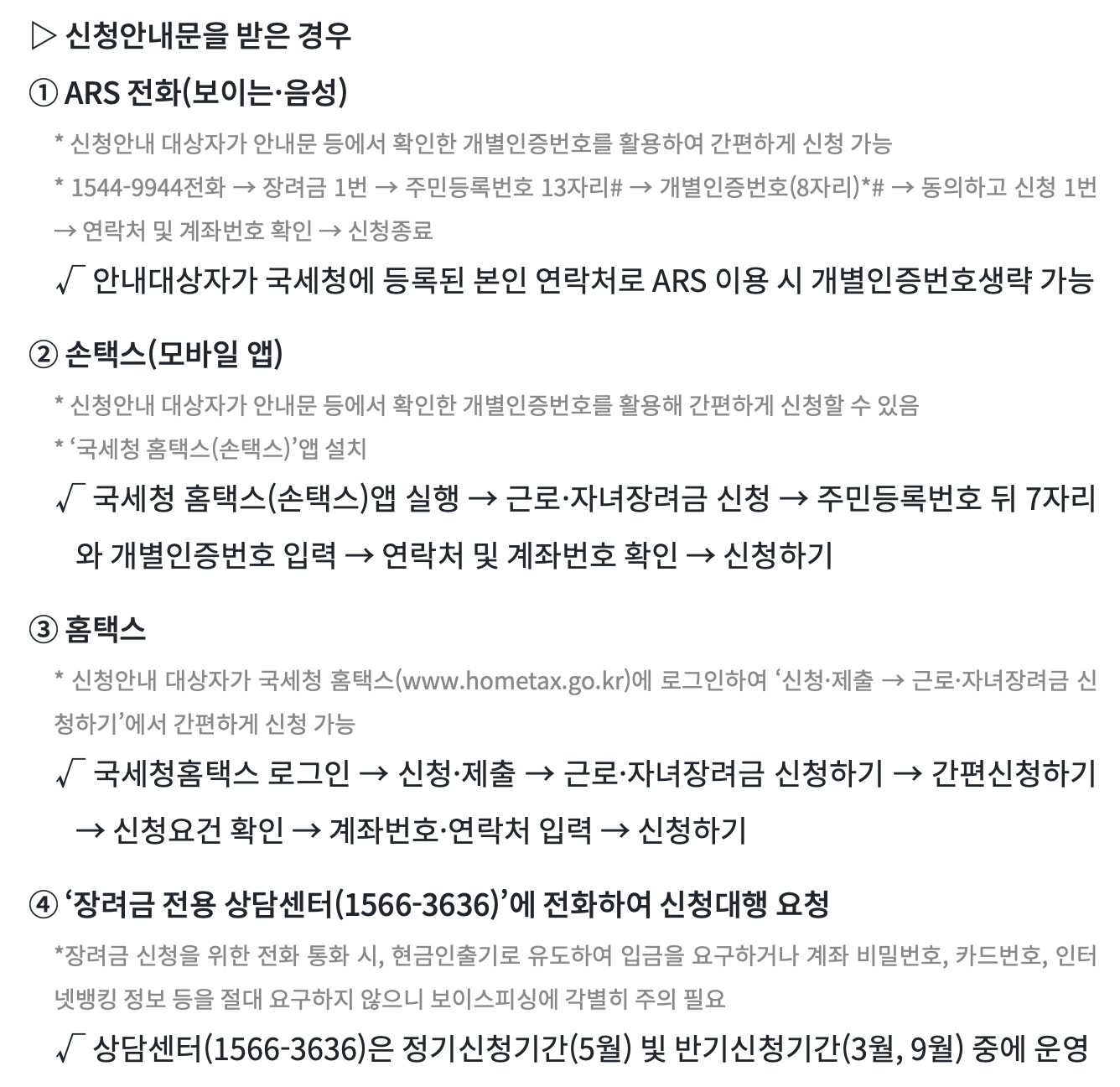 신청안내문을 받은 경우 근로장려금 신청 방법